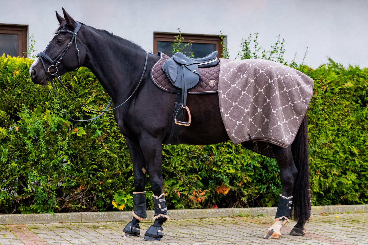 TORPOL’s® stylish fleece rug from the CHARM collection adds a fashionable touch and effectively dries the horse after intensive training.