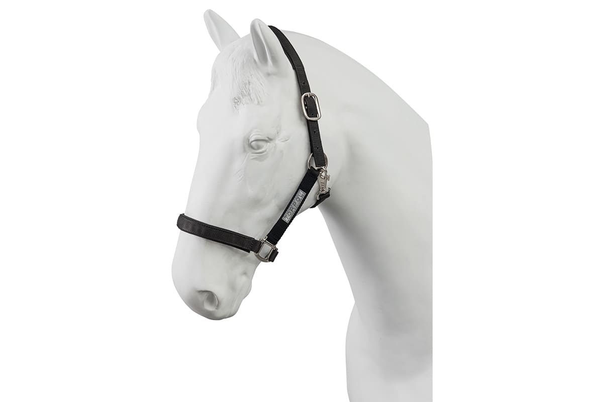 A classic black halter made of durable webbing, it is softly lined in the noseband and occipital area. The halter features a double adjustment, facilitating a proper fit. It is resistant to damage, practical, and easy to clean.