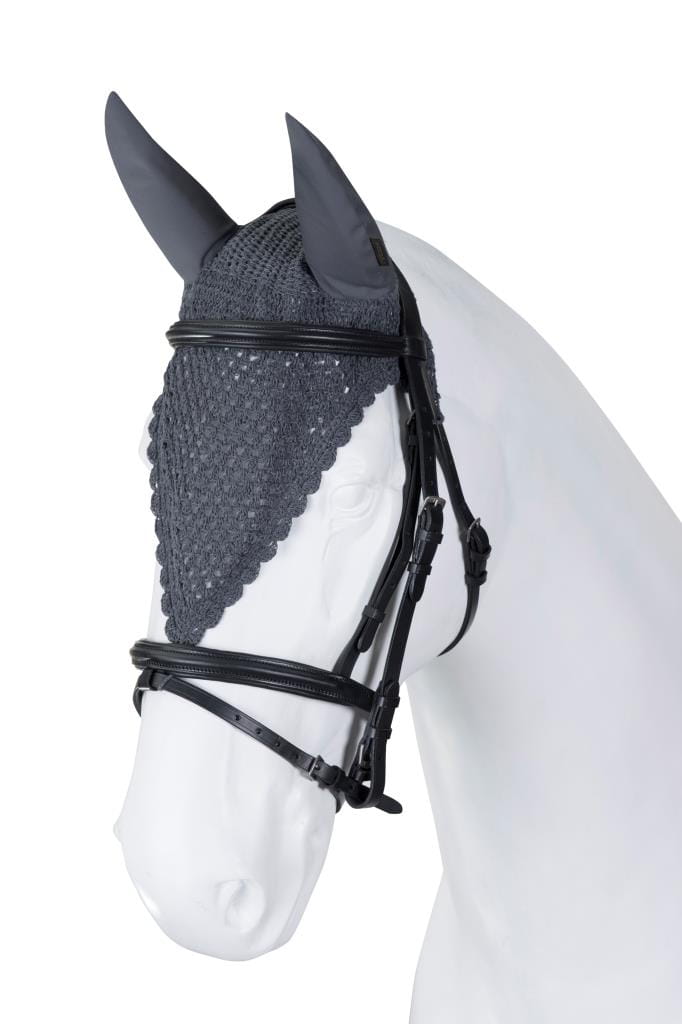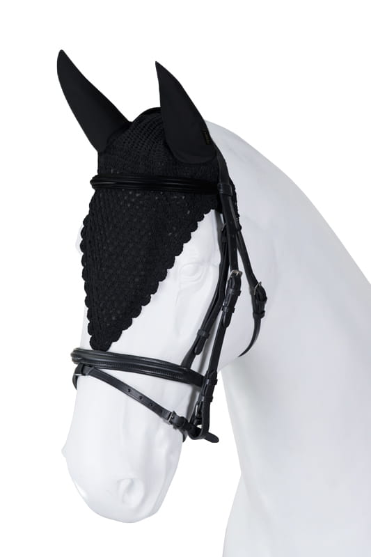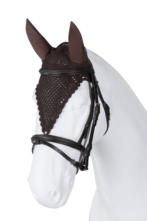 Handmade from fine cotton yarn, finished with decorative stitching. Protect against insects and muffle sounds while riding. Feature a distinctive shape and a loop that allows connecting to the noseband.